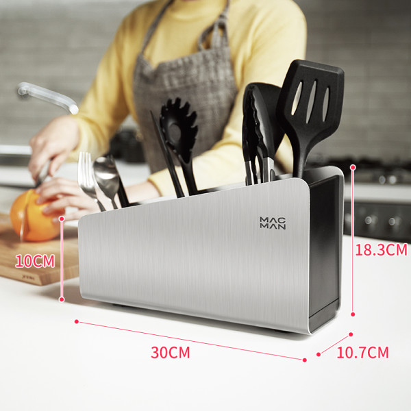 诗诺雅 太空铝高档餐具筒(银色) 筷子收纳盒 家用筷架 双筒 方形