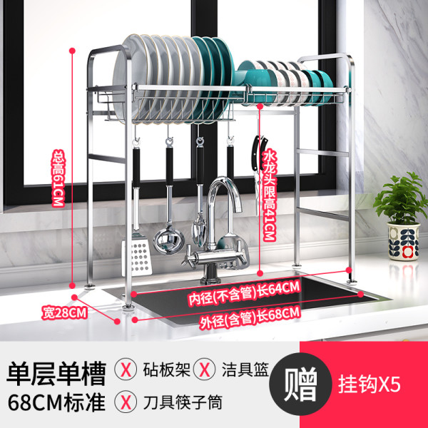 诗诺雅 厨房水槽置物架碗架沥水架不锈钢家用碗筷碗碟收纳架水池用品大全 单层(水槽60-85cm)全套配件