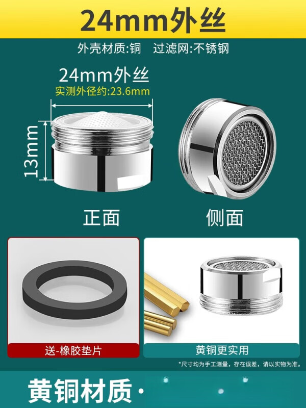 陆康通用水龙头起泡器内芯防溅头过滤网嘴发泡器冷热水出水嘴配件大全 A款24mm外丝【铜外壳】