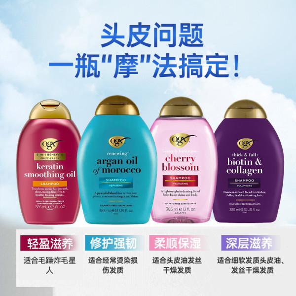 OGX角蛋白洗发水385ml蛋白修复受损发质修护无硅油强韧光泽洗头膏