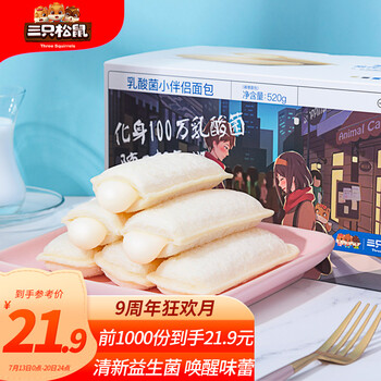 三只松鼠乳酸菌小伴侣面包 营养早餐代餐口袋手撕面包网红零食生日520g/箱