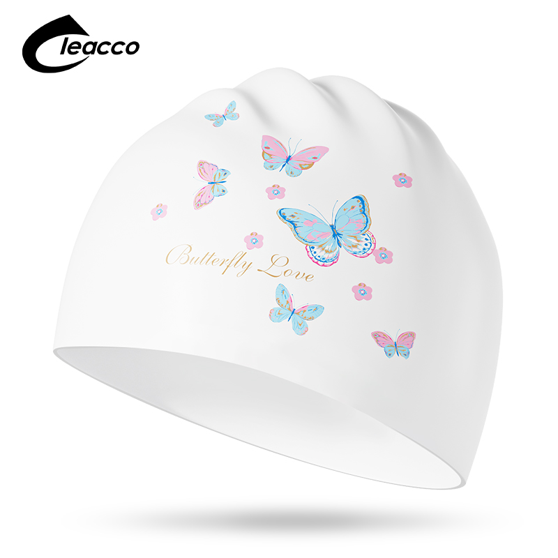 LEACCO防水护耳硅胶时尚泳帽女专业长发大号不勒头ins印花泳帽