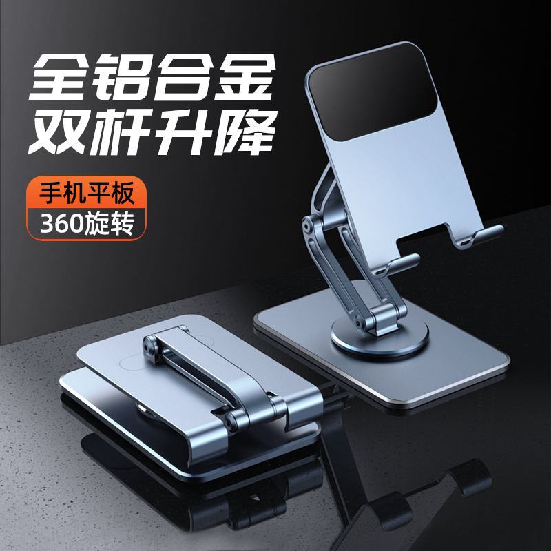 旋转铝合金属手机支架桌面懒人直播平板iPad通用网课学习支撑架家用折叠式升降主播看电视伸缩可调节便携托架