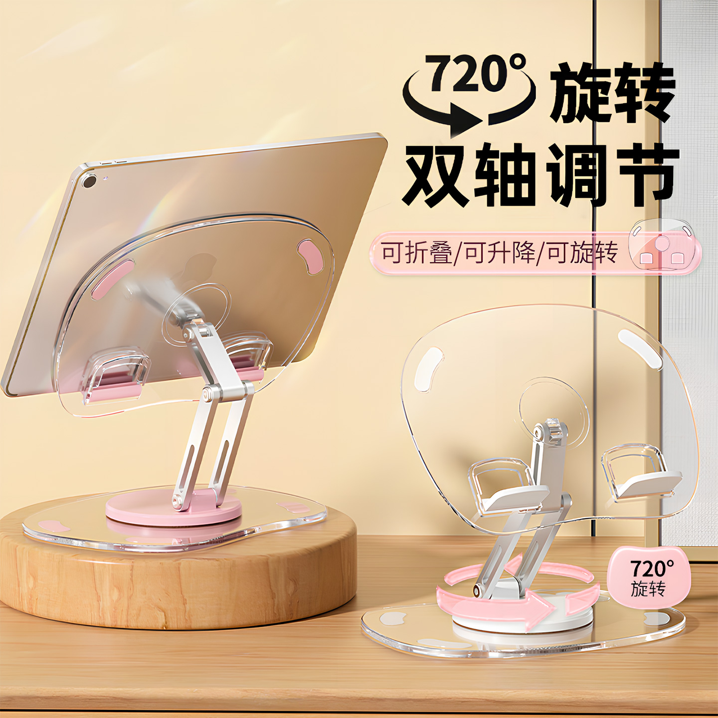 亚克力旋转手机支架桌面ipad支架手机多功能通用平板撑架便携360度可折叠调节直播支架子懒人床头网课神器