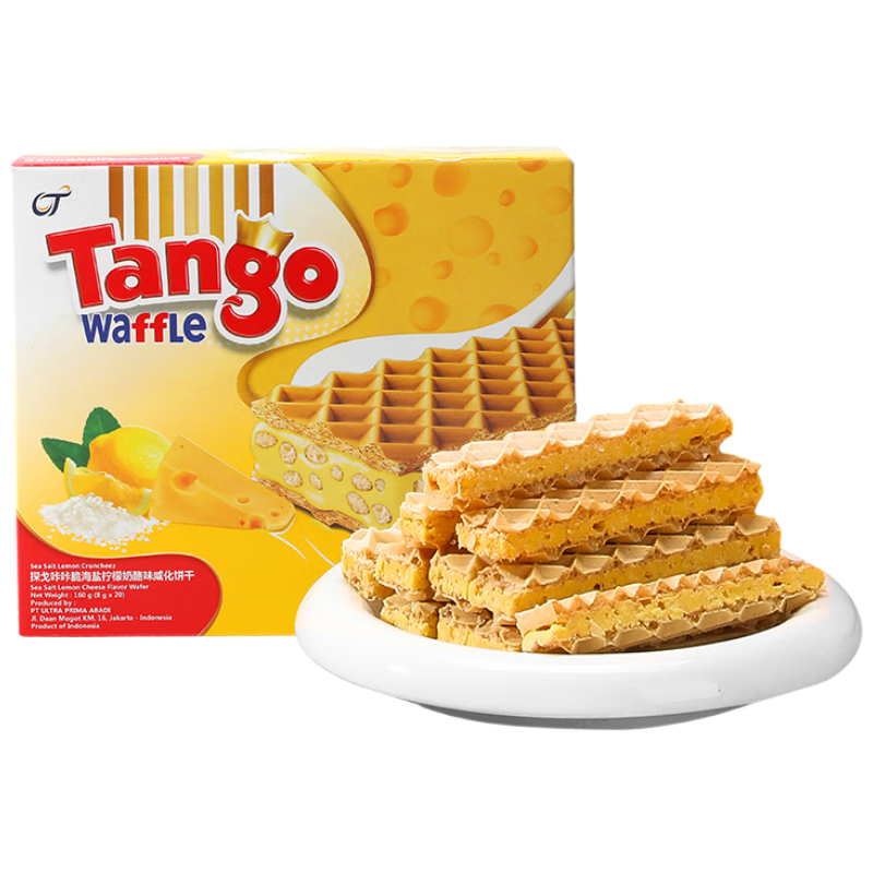 探戈探戈咔咔脆海盐柠檬奶酪味威化饼干160g 印尼进口 注心曲奇代餐