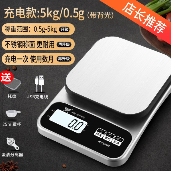 凯丰 厨房秤家用电子秤克称食物称厨房用蛋糕烘焙称茶叶 充电5kg/0.5g背光+多重豪礼