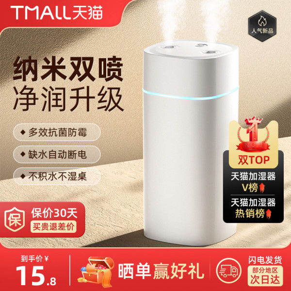 RCA 加湿器小型办公室工位桌面迷你空气净化器2023新款家用静音卧室孕妇婴儿无线可充电款宿舍学生便携式车载喷雾