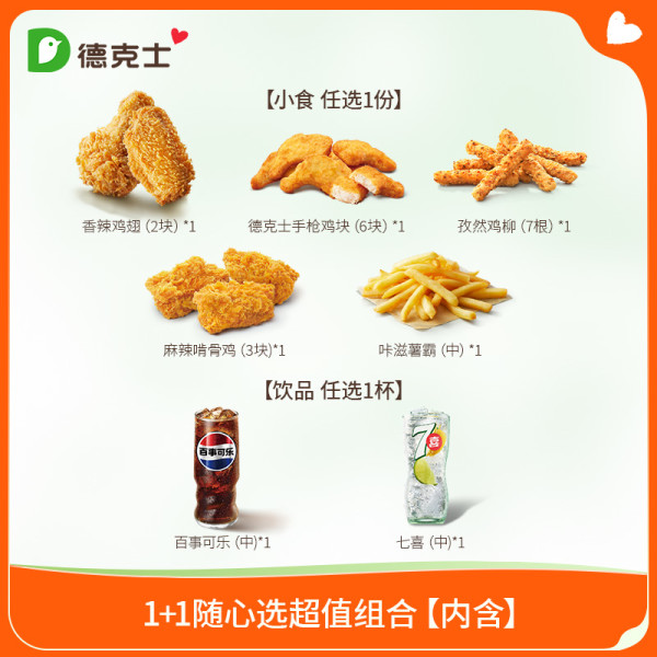 【百亿】德克士 1+1随心选超值组合 单次券s【勿填陌生号码防骗】