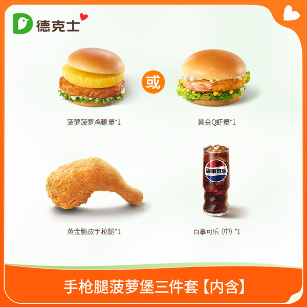 德克士 手枪腿菠萝堡三件套单次券s