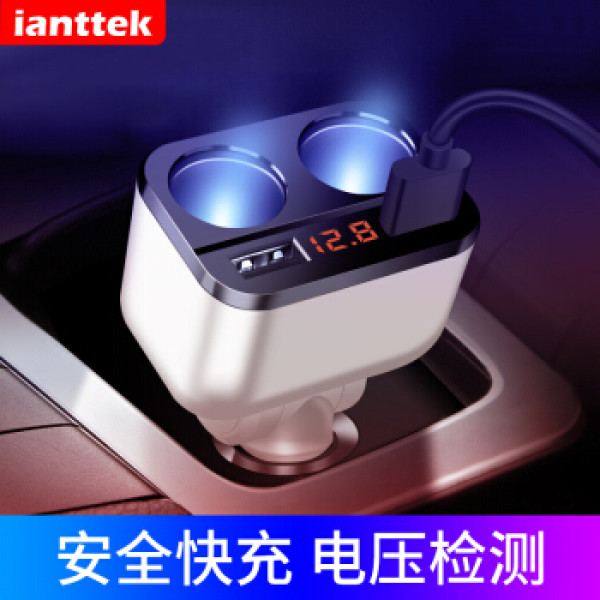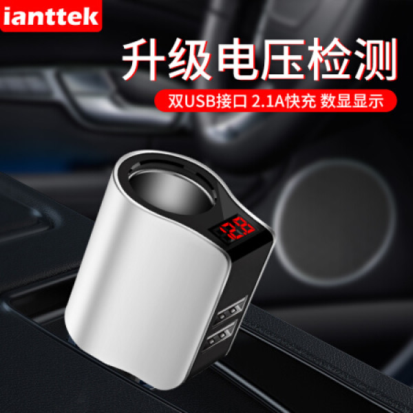 爱蚁(ianttek)车载充电器点烟器一拖二双USB双点烟口 多功能转换器 电压检测LED数显 汽车用品 AYC-01