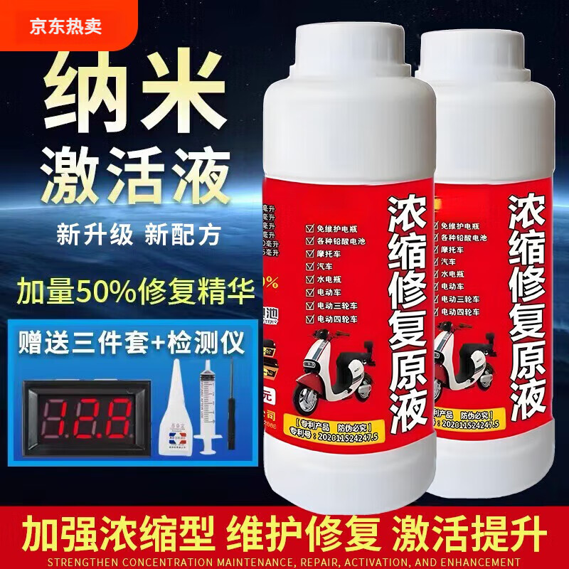 哲庭(ZHETIN)电瓶修复液浓缩型原液电动车电池石墨烯激活液叉车铅酸蓄电池通用 赠品检测仪