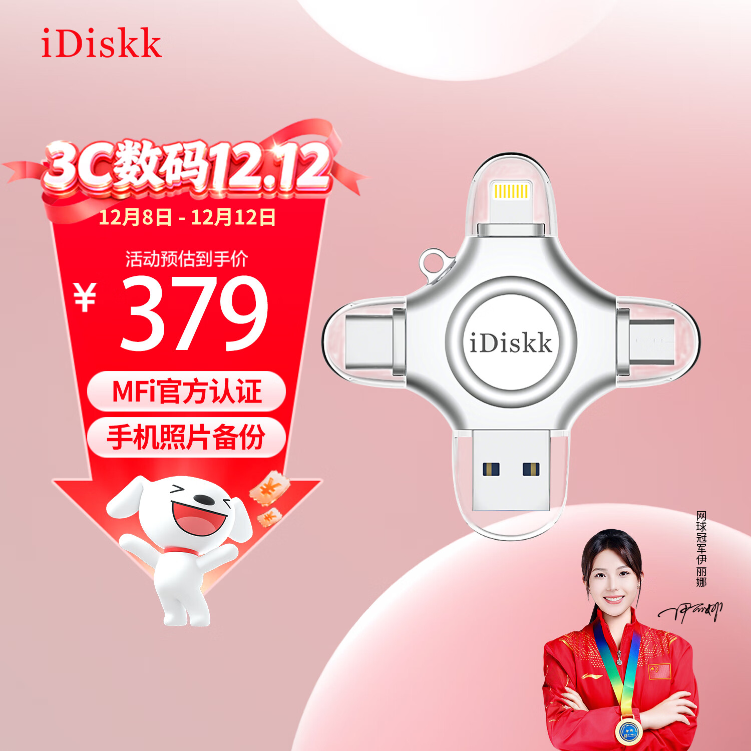 iDiskk 128GB MFi认证三合一手机U盘type-c电脑直连存储大容量适用华为安卓苹果15iPhone16照片备份优盘