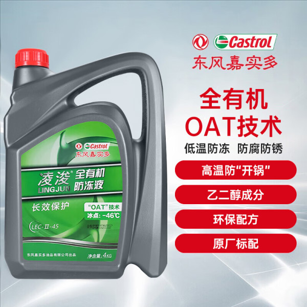 东风嘉实多 凌浚 有机型(OAT) 发动机长效防冻液 冷却液 -35℃ 红色 4KG