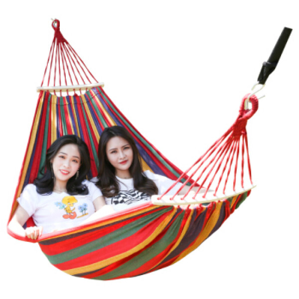 自由之舟骆驼加厚加宽双人帆布彩条吊床户外休闲秋千野营露宿秋千200cm*150cm