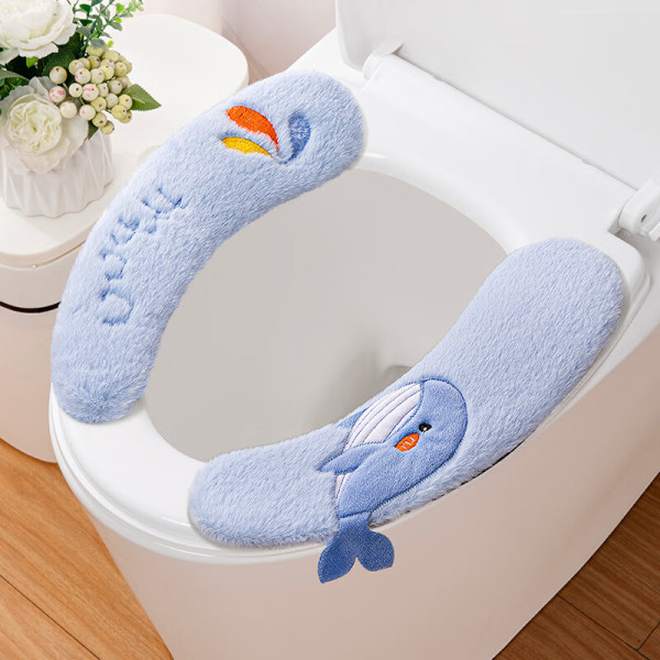 侑家良品 加厚马桶垫坐垫 冬季粘扣式 蓝色鲸鱼