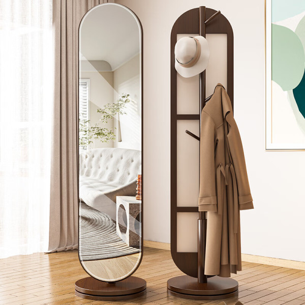 唯妮美(vinme)旋转镜子衣帽架一体全身穿衣镜落地镜家用女生试衣镜挂衣架实木 【长镜】全身镜带衣架(复古色)