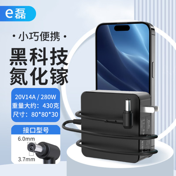 e磊 氮化镓充电器20V14A ASUS华硕ROG魔霸6plus G713R笔记本充电源适配器 280W 6.0*3.7