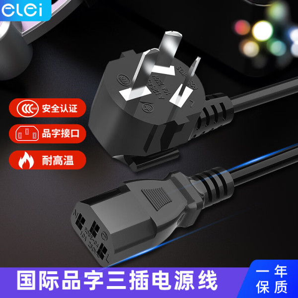 elei e磊 电脑主机电源线 1米 国标三孔品字尾通用 电饭煲台式机箱显示器屏打印机电源连接线适配器插头