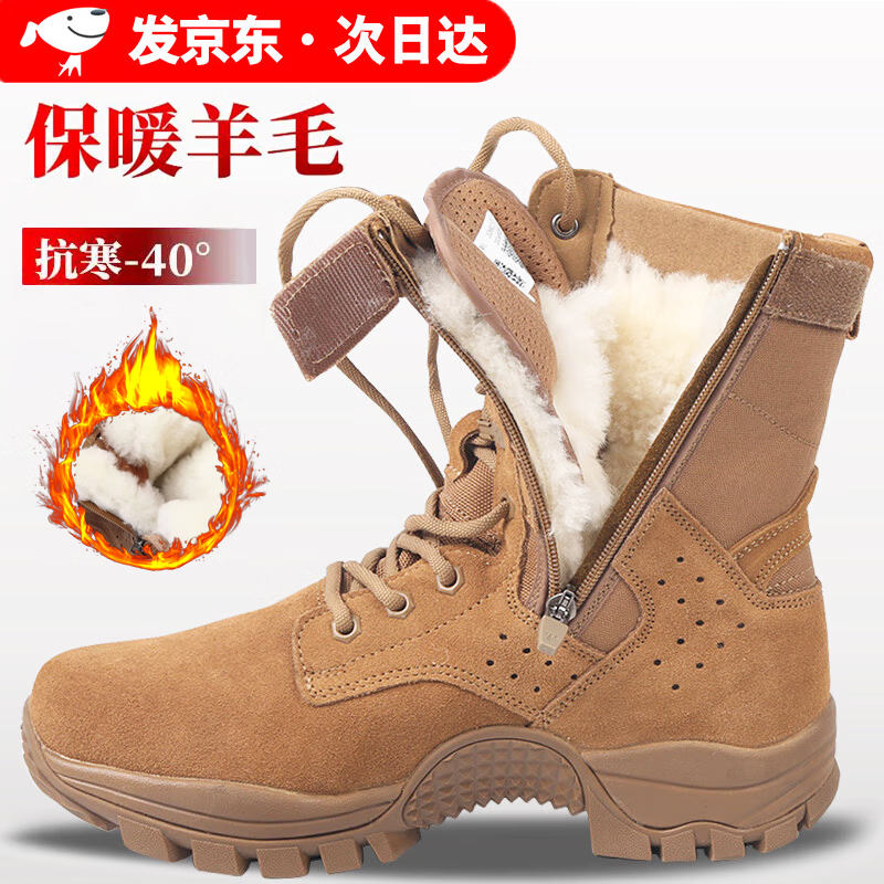3066新式棕色作战靴男作战鞋超轻高帮侧拉链战术靴透气耐磨训练沙漠靴 冬季羊毛作战棉靴【加绒款】 41 /255(原厂正品 两双鞋垫)
