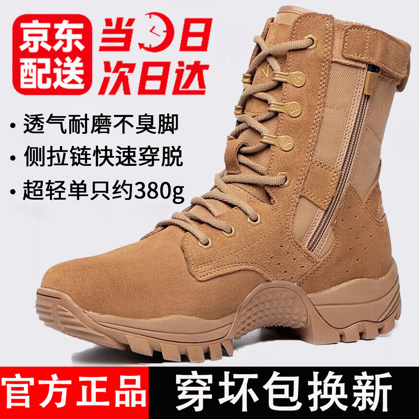 3066新式棕色作战靴男作战鞋超轻高帮侧拉链战术靴透气耐磨训练沙漠靴 棕色新式作战靴 46 /280(原厂正品 两双鞋垫)