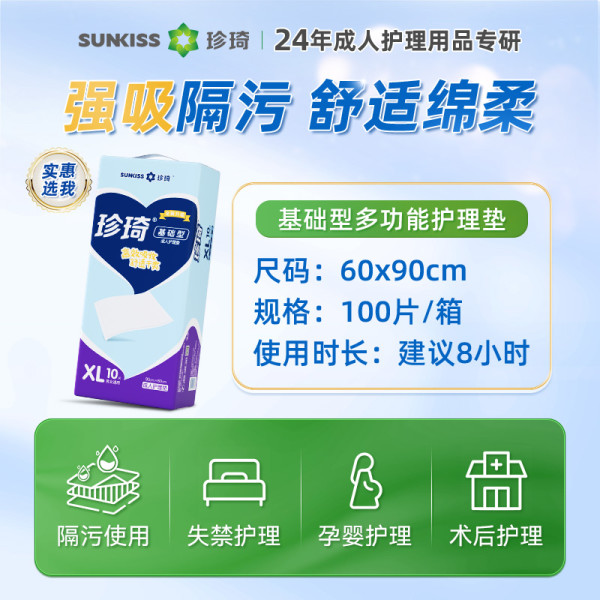 珍琦成人护理垫隔尿垫产褥垫老年人护理吸水尿垫60x90cm尿不湿护理垫 【超值囤货】L码护理垫 箱装100片