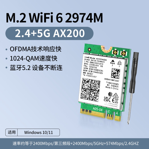 达而稳 M.2无线网卡BE200三频WiFi7 877M双频2.4G/5G/6G蓝牙5.2/5.3/5.4笔记本台式机电脑接收器