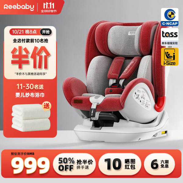 瑞贝乐(reebaby)天鹅plus儿童安全座椅汽车用360度旋转0-12岁婴儿车载宝宝C-NCAP 莱特红【爆款清仓】