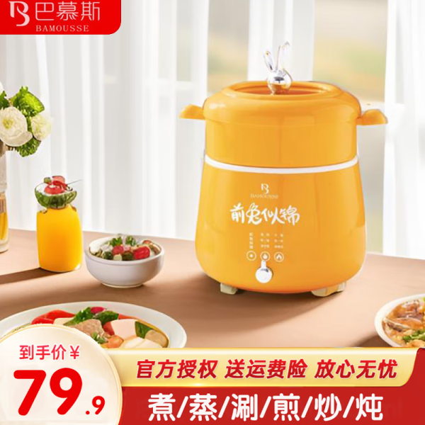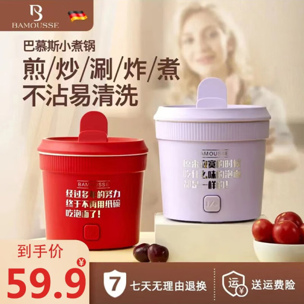 巴慕斯小型多功能便携带带蒸屉不粘锅家用宿舍办公用一体电饭锅