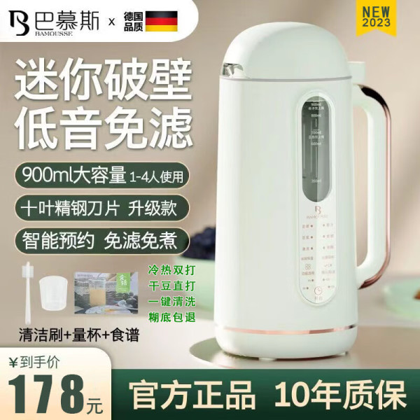 巴慕斯(Bamousse)德国破壁机家用多功能迷你小型豆浆机全自动加热免过滤料理机低音 米白色