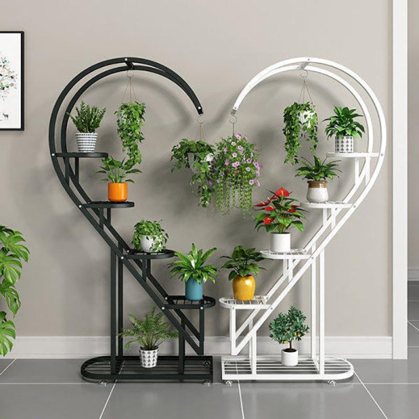 Sivir 夕维尔 花架阳台多层花盆架客厅网红置物架落地多层装饰室内铁艺心形花架 黑色(单个)心形升级款