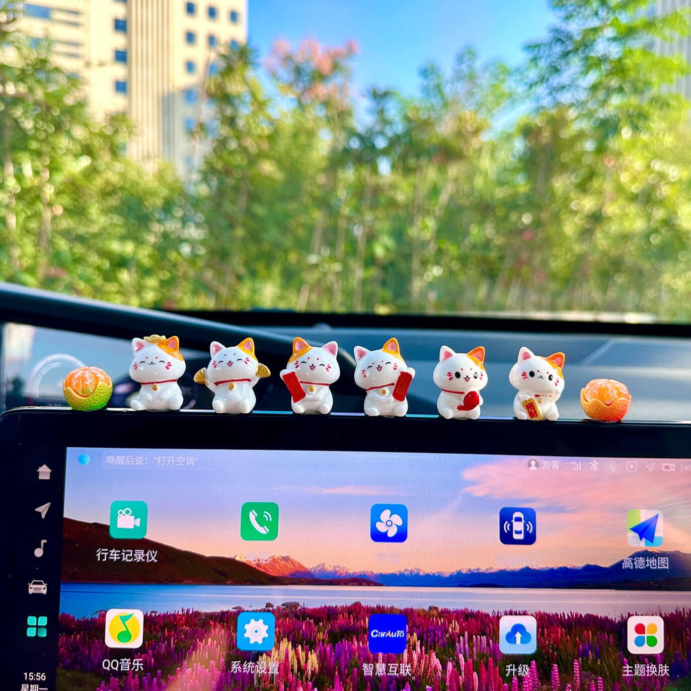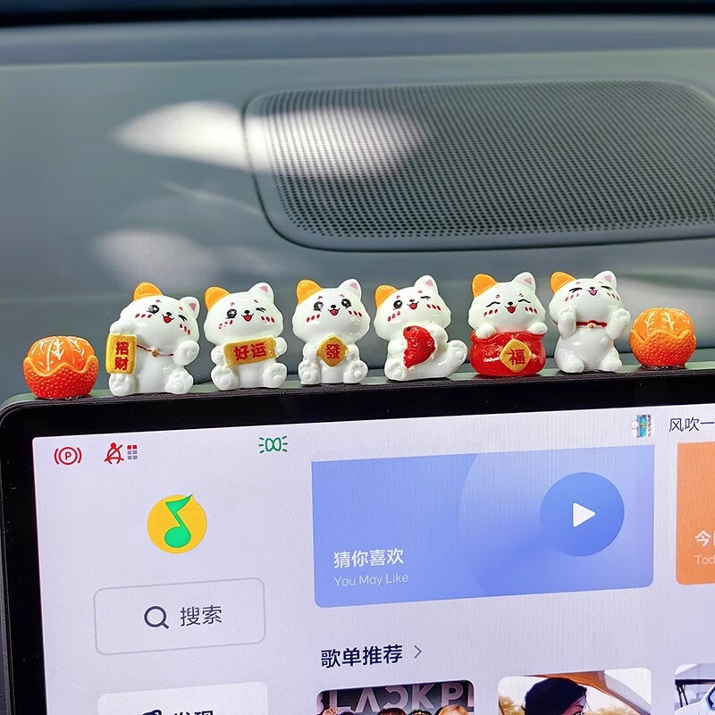 齐选汽车摆件中控台屏幕迷你车载上新款男女士创意可爱车内装饰品通用 【招财猫】8件套
