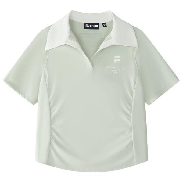 FILA FUSION斐乐潮牌女子针织短袖POLO衫2025夏时尚修身上衣 豆荚绿 M