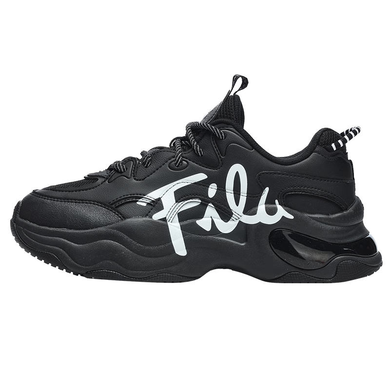 FILA FUSION 斐乐潮牌硬糖鞋女鞋秋冬款厚底增高黑色通勤鞋运动鞋