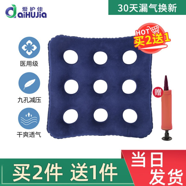 aiHUJia爱护佳 防褥疮充气坐垫圈老人残疾人轮椅车座垫医用气垫办公室椅子臀部前列腺减压坐垫 宝蓝植绒方形9孔充气坐垫