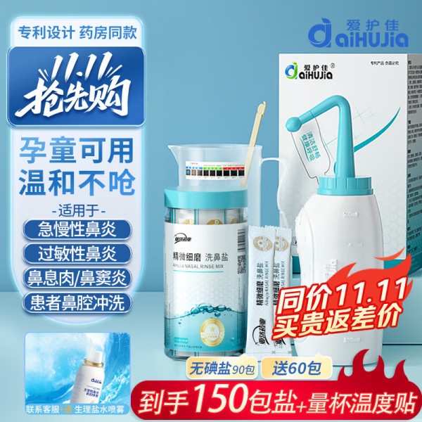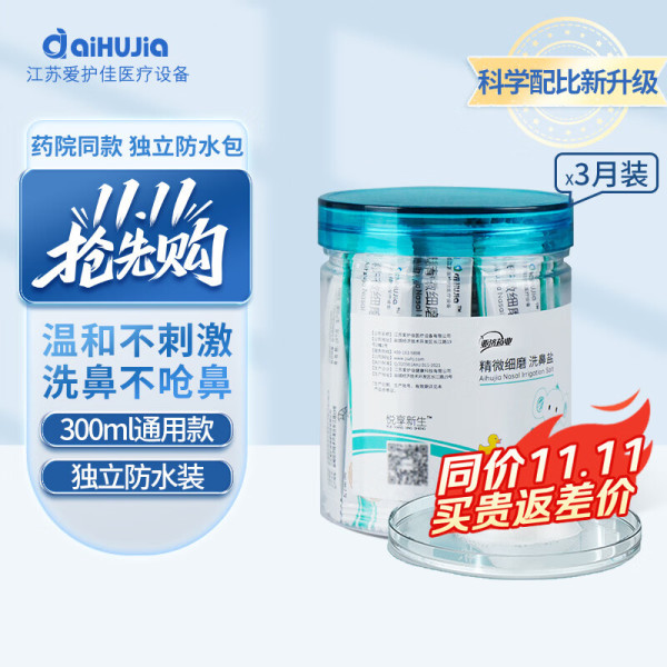 爱护佳(aiHuJia) 500mL洗鼻器儿童成人鼻炎鼻窦鼻腔冲洗生理盐水洗鼻90包洗鼻盐