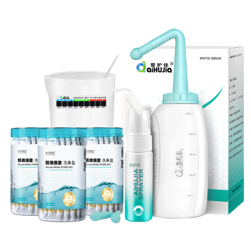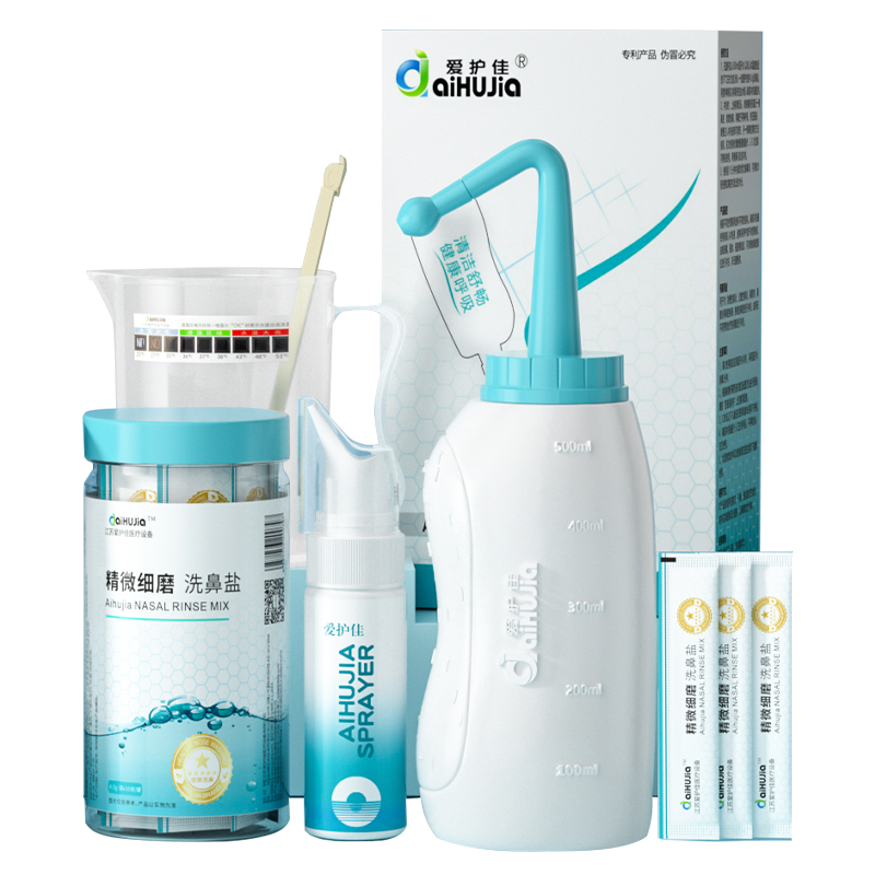 爱护佳(aiHuJia)洗鼻器成人儿童鼻炎鼻腔过敏冲洗器生理盐水洗鼻壶喷500ml 30盐