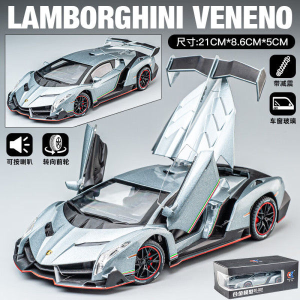 移动端、京东百亿补贴:车致 兰博基尼毒药车模合金仿真跑车版汽车模型摆件送男生 1:24 兰博基尼毒药-灰色