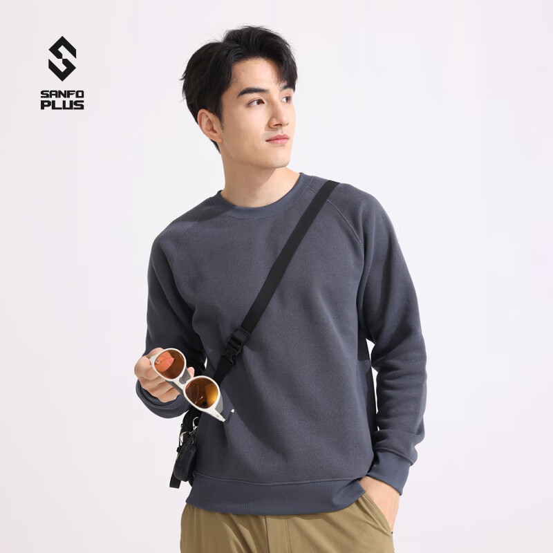 SANFO PLUS三夫户外抓绒衣轻锋毛织圆领毛衣轻便保暖男秋冬户外运动卫衣 枪灰 XL
