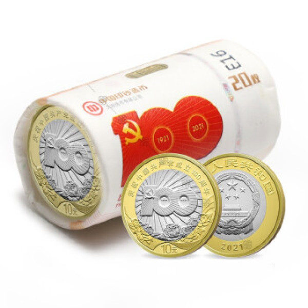 金永恒 2021年建党纪念币10元面值 中国共产党成立100纪念币收藏 钱币硬币 20枚 整卷(送收藏筒)