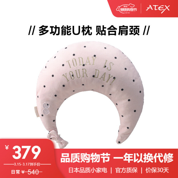 ATEX日本U型按摩枕 肩颈热敷揉捏腰部按摩器头枕家用办公室白领Lourdes颈椎脖子护颈仪新年礼物 粉色