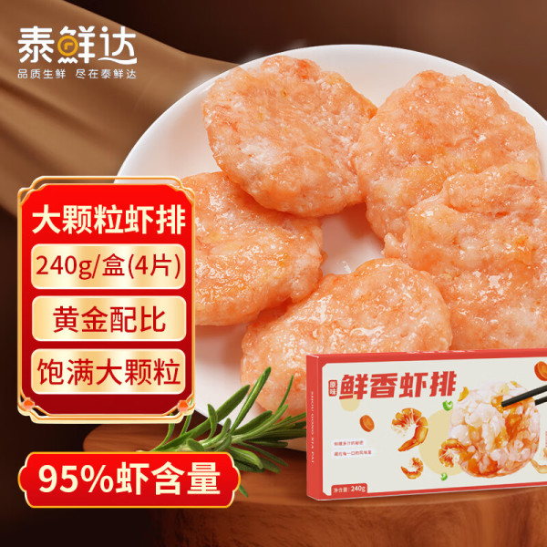 泰鲜达鲜虾饼虾排240g/4片 含虾量95% 儿童虾滑饼半成品营养早餐预制菜