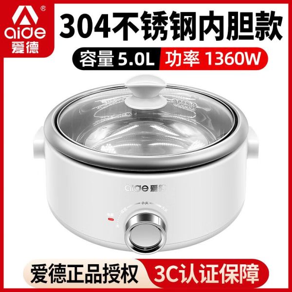 爱德4L~5L分体式家用电火锅304不锈钢内胆2-4-6人多功能电热锅电煮锅316不锈钢 304钢款白色5L