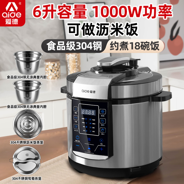 爱德 6L电压力锅家用大容量316不锈钢内胆304智能4~8人多功能饭煲