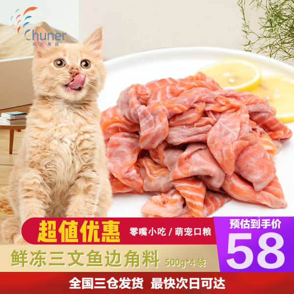 纯尔【源头直发】冷冻三文鱼边角料2kg褐色肉 无骨无刺宠物猫狗粮