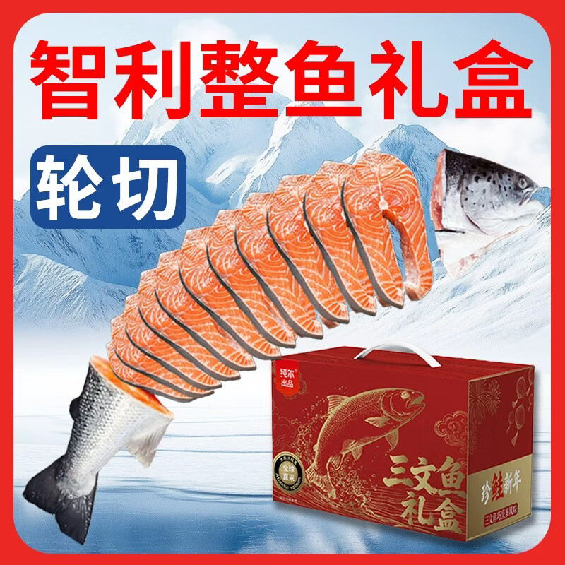 纯尔冷冻智利进口三文鱼礼盒轮切净重9-10斤 家庭宴请 源头直发