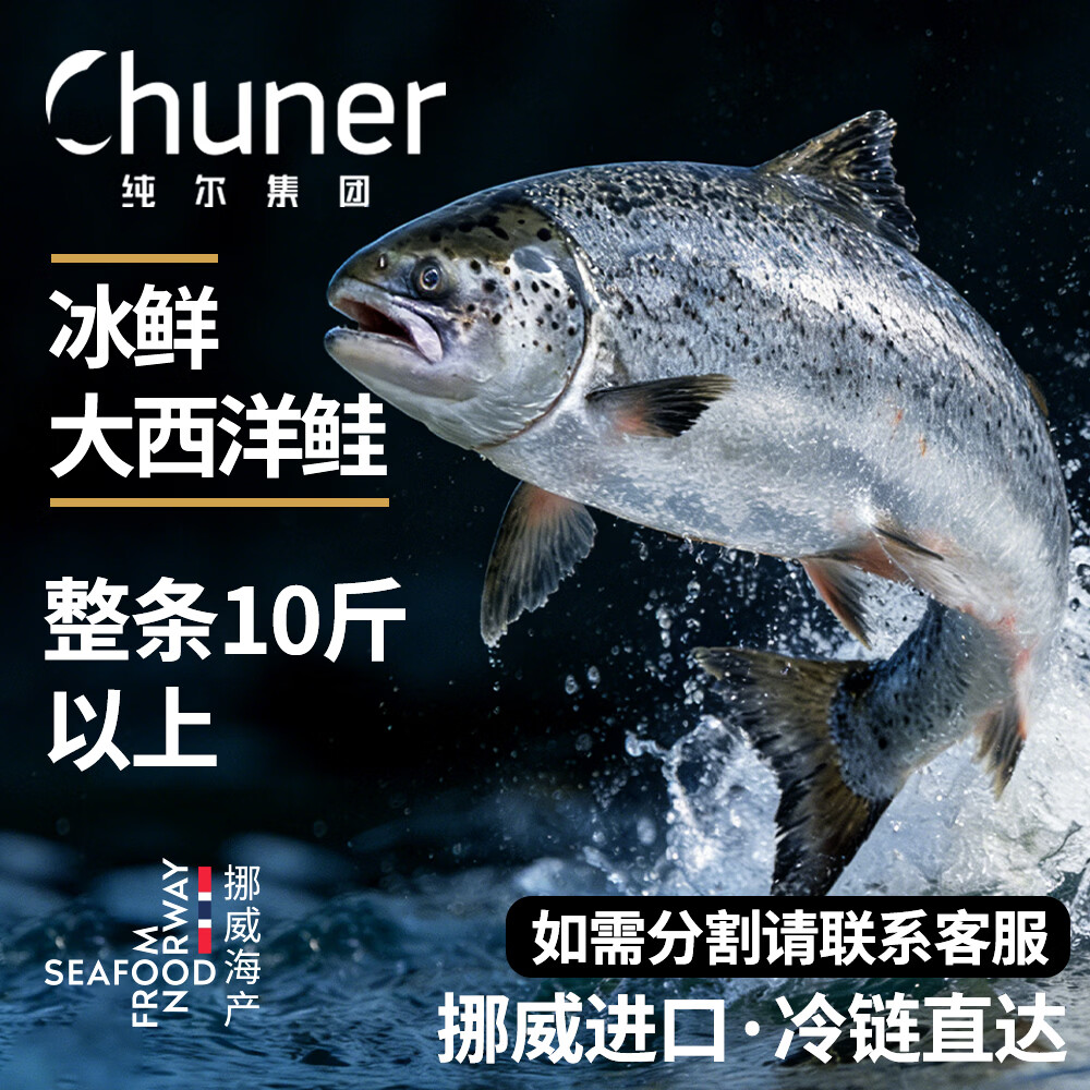 纯尔挪威进口大西洋鲑鱼整条10斤以上三文鱼 可生食级别原料 源头直发