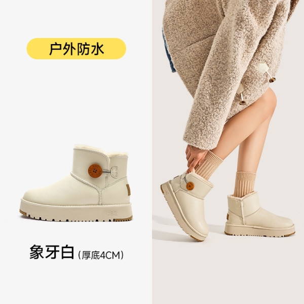 U·B·Z UBZ 防水白色皮面厚底雪地靴女2024冬季新款加绒加厚防滑保暖棉鞋