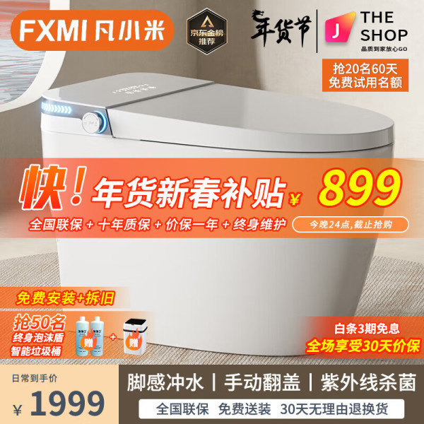移动端、京东百亿补贴:凡小米 FXMI 零度系列智能马桶一体机全自动带水箱虹吸式泡沫盾自动翻盖坐便器 M1s白顶配-泡沫盾+红光+带水箱