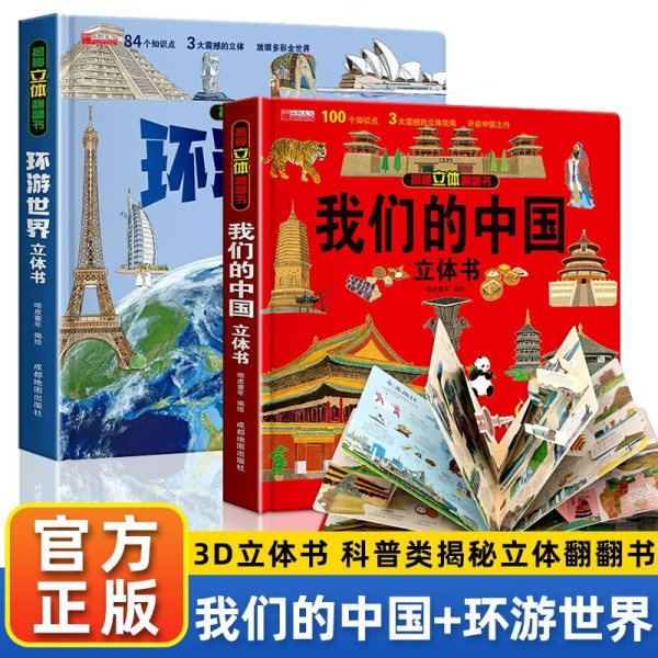 我们的中国立体书+环游世界立体书全套共2册 儿童3d立体书科普百科绘本故事书益智玩具揭秘翻翻书以上8-10-12岁故事 早教启蒙认知阅读读物幼儿园小一年级百科全书 我们中国+环游世界-3d立体书