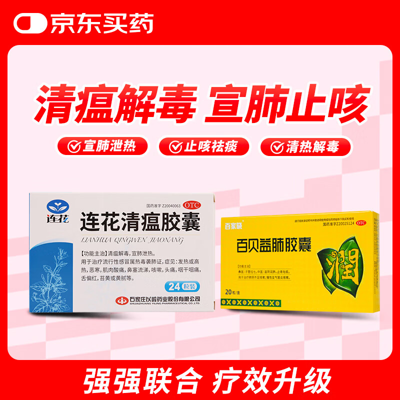 【病毒感冒咳嗽联合用药】以岭 连花清瘟胶囊 0.35g*24粒 百家晓 百贝益肺 0.3g*20粒 止咳益肺 清瘟解毒 宣肺泄热 治疗流行性感冒 新冠指南用药